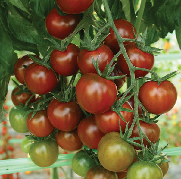 Chocolate-red 1″ 1-ounce cherry fruits form in clusters. Sweet, smoky flavor with lower acid. Very juicy. Indeterminate.